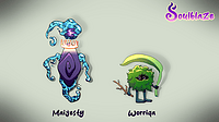 Hi everyone! Enjoy a sneak peek of the newly drawn animons of region 3! Image Description: Drawings of animon from left to right: Shilulu - A string of pearl-like orbs in different shades of green, ye...